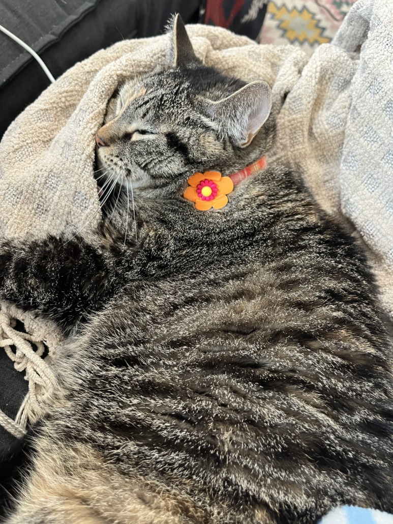 My cat Buffy got out yesterday and hasn’t come back home yet. She likes to go outside but usually doesn’t leave our yard. I’m so worried about her. She’s brown and overweight, green eyes, and a pink and orange collar with a flower on it (no tag on the collar but she goes by BUFFY!)