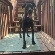 Found dog at State/Prospect St. in fountain square area. Black/Brindle. Possible dane mix. She was terrified at first and quickly became very sweet — she is very thin and clearly a puppy’s