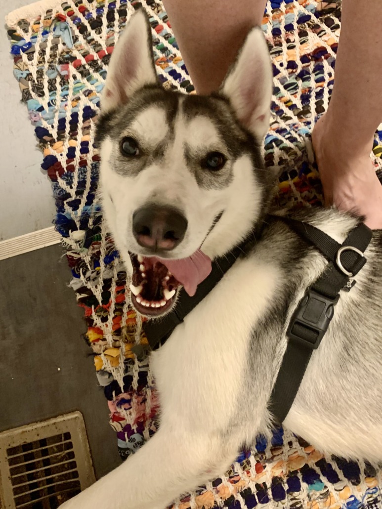 Dog found in Garfield Park. Young female husky mix, very sweet white grey and sable.