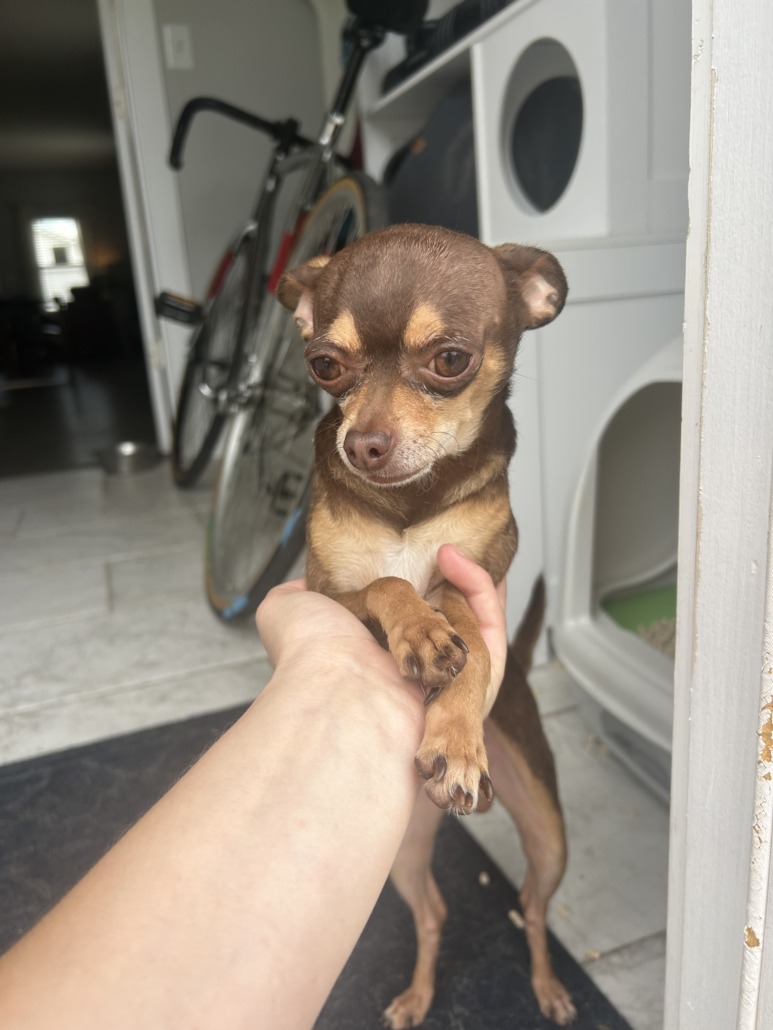 Brown/tan unchipped, not fixed male, older looking chihuahua