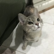 This kitten looks about 4 months old- very sweet! Thinking she might have gotten out of someone’s house