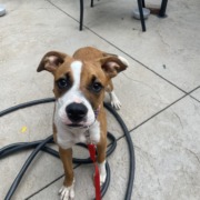 Tan and White teenage dog found near 50th and Keystone in Family Dollar parking lot.