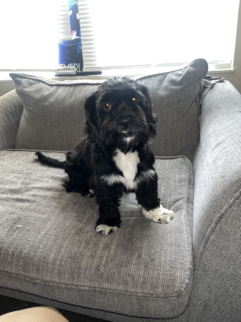 Very sad, misses his home. I have him inside in a dog crate. My other dog is unsure of him.