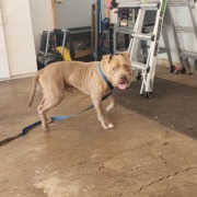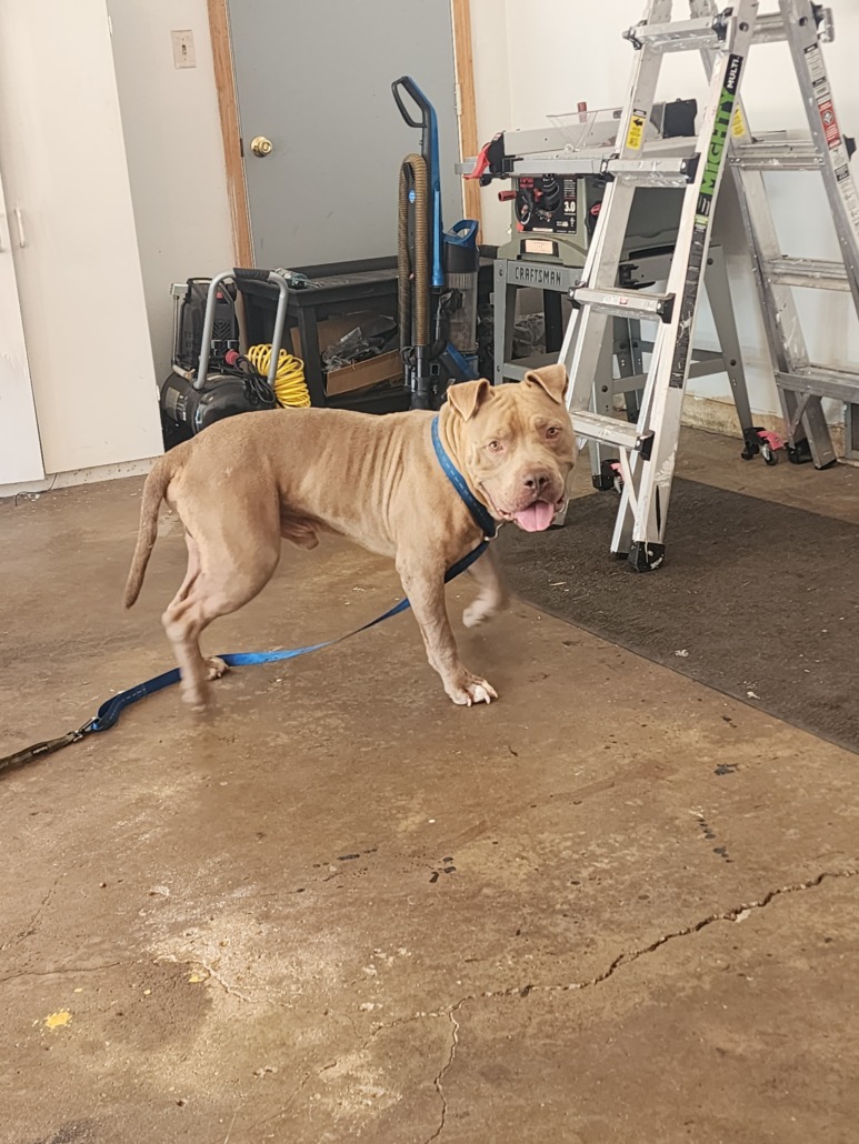 Large red pit. Looks like he’s mixed with mastiff? About to see if he’s microchipped, today.