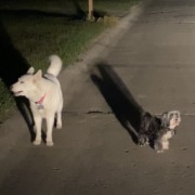 White husky mix and small yorkie mix roaming in Twin Oaks subdivision. Tried to get them to come to me but they just ran.