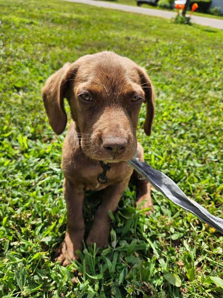 Small puppy appears to be male chocolate brown lab mix very terrified of people seems abused or just extremely fearful if you know him or owners please contact so we can get him home thanks