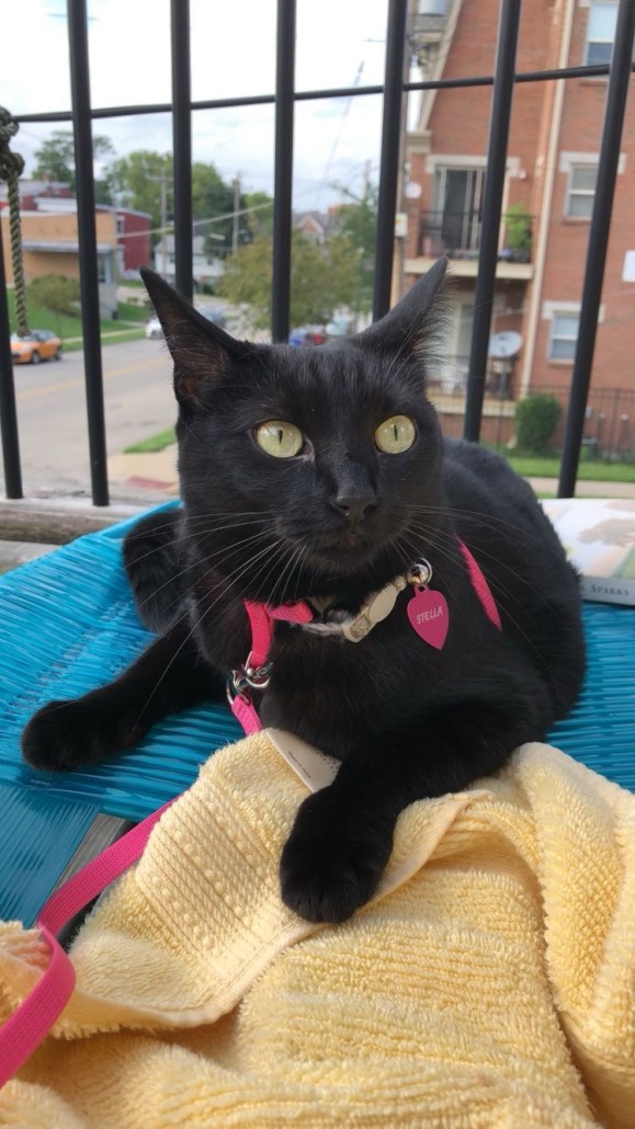 sweet girl kitty lost! she is strictly an indoor cat and never goes outside! i do think she would approach a stranger if called due to this. she has a pink/silvery collar with her name (stella) and owners number on the back. she had a pronounced pouch belly