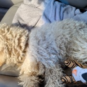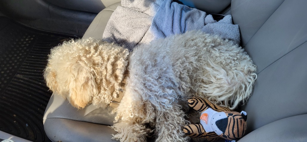 Had a black collar on. We put a different collar on him so there was a clip for a leash. He is very friendly and curious. We will be checking for a microchip later today.