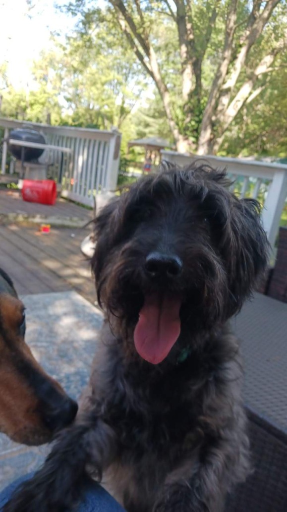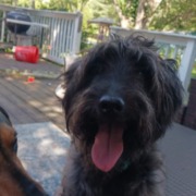 My daughter found this very good boy near 38th and Industrial Blvd. he appears to be a Cairn. Looks to be about ten-12 years old.