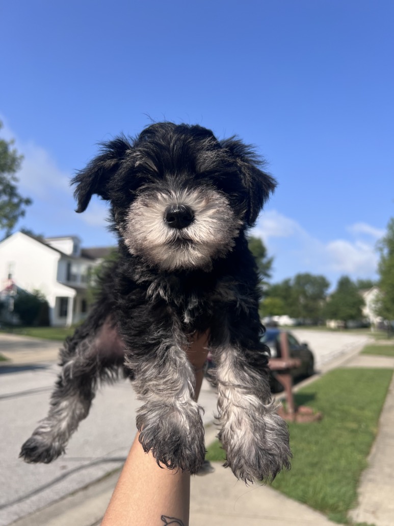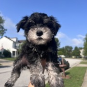 Miniature schnauzer puppy. Hopefully with her all white miniature schnauzer mom. Both got out of the gate together. So hopefully they are together.