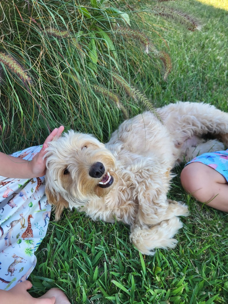 Found smaller female doodle. Thin, looks like she’s had a litter but recently groomed.