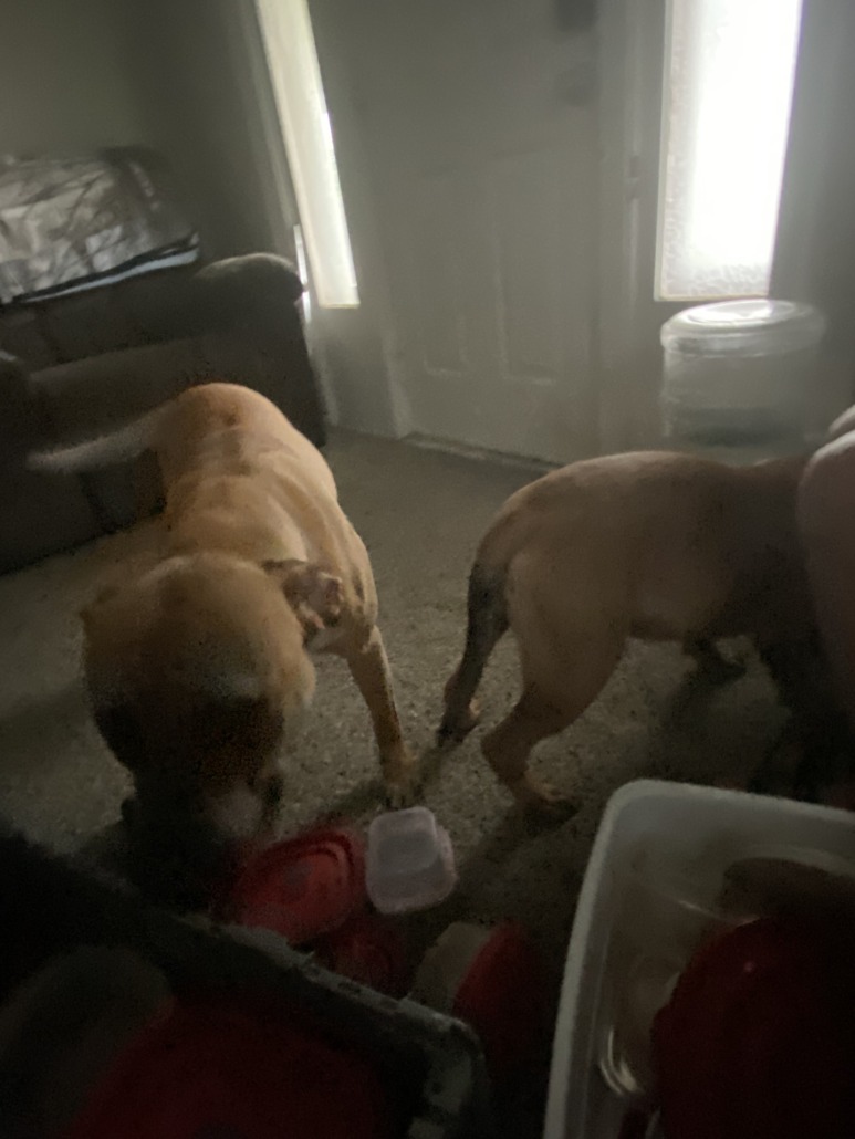 Two pit/ boxer mix puppies, both tan/golden, both around a yr, 1 female 1 male. Very friendly found on west Troy and bluff