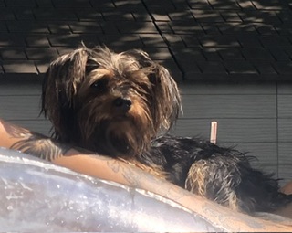 Black & gold toy Yorkie. Very friendly and has fishy breath. He responds to his name Rocky