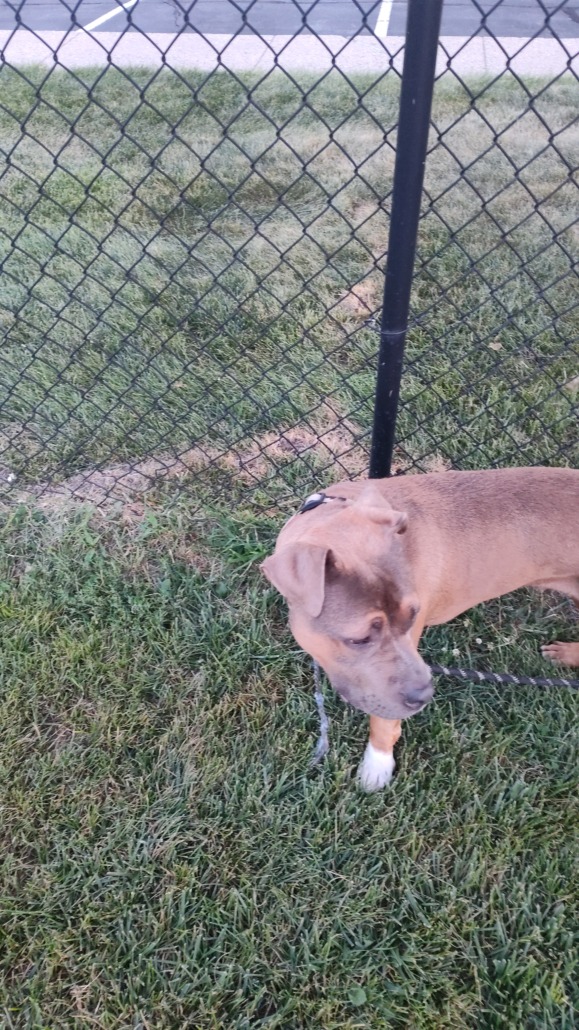 A tri colored pit bull tan,brown and dark brown male medium sized still a puppy found at lake castleton apartments