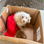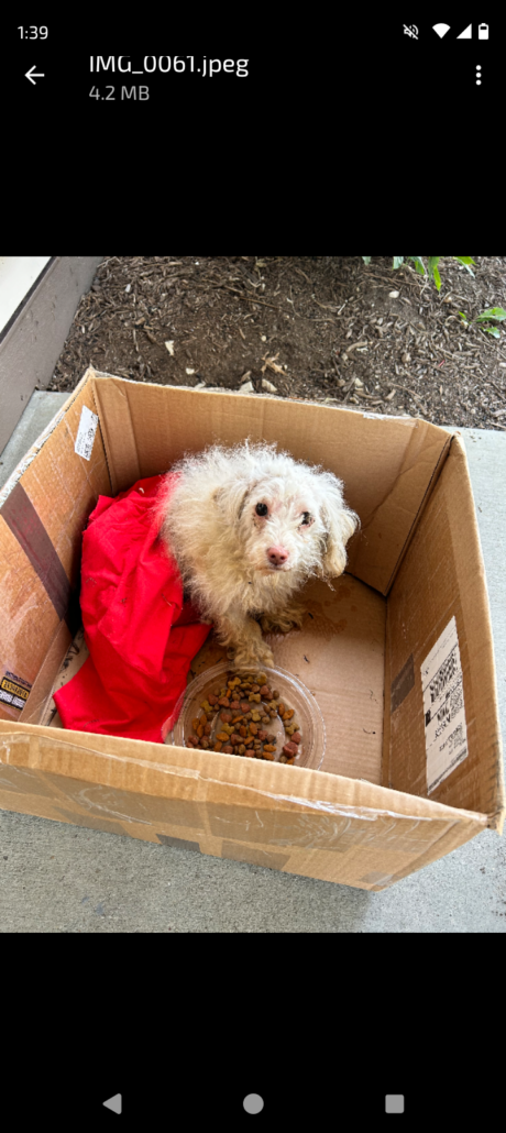 She was found on Oak Leaf Drive at Broad Ripple Trails apartments, underneath some bushes. She is currently in the leasing office.