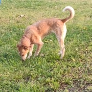 Female, seemed very sweet, approached me while I was walking at Clermont Lions Club park. Pink and purple collar but no tag. Unsure of breed There was another person camping there who had leash and gave her some water.