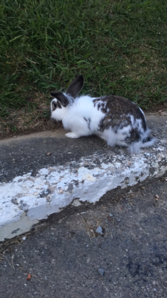 Found this white and gray/brown rabbit outside my apartment building. It’s very friendly and seems to be well taken care of.