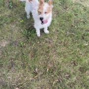 Dog has primary white hair with brown spots on body and face. I think it’s a Jack Russel Terrier, he is not fixed