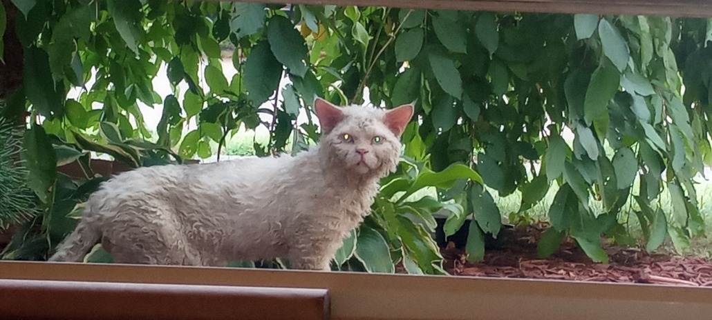 This unusual kitty has been hanging out around the 2700 block of Fairhaven Drive in the Sheffield Woods addition on the far east side. He comes and goes from the Waterstone Place apartments which is off of Mitthoeffer ~ between 25th and 30th.