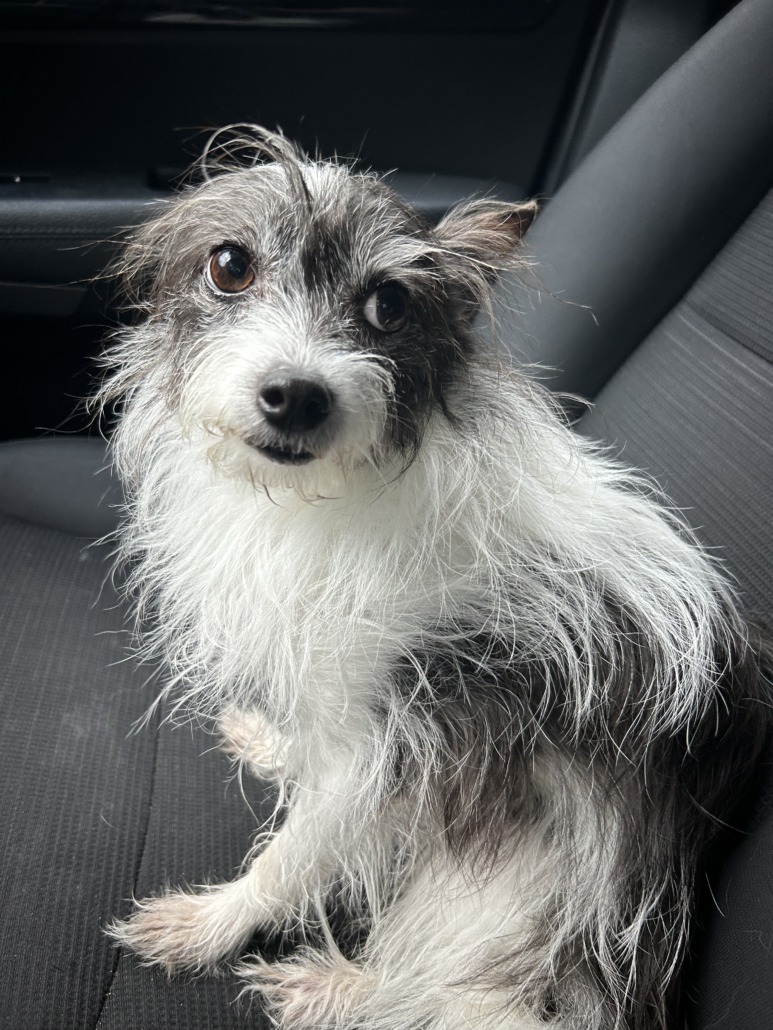 Black and White small long haired dog found walking on Village Way close to Geist Landing and Meijer