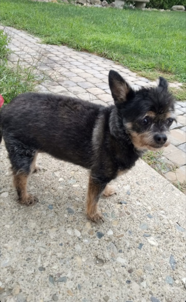 Black chihuahua dog, her paws are brown. She has epilepsy and needs her medication. Very small dog