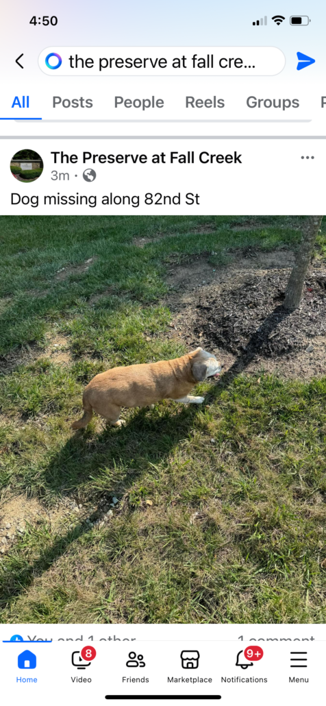 Beagle mix with light tan coloring. We found him along 82nd street just west of Fall creek. The dog is in our fenced backyard. No collar. Proof of ownership required