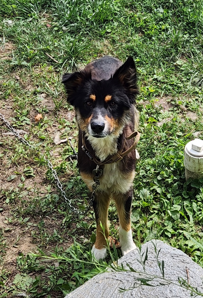 An Australian Shepherd, Warrior is curious and easy to keep entertained.