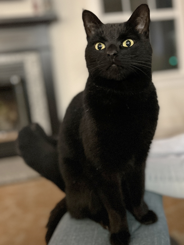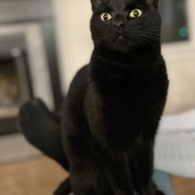 Sirius is a short hair, black, medium sized, male cat