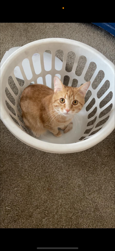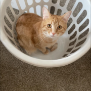Male orange cat. About 10 lbs. Friendly but probably scared. Weighs about 10 lbs.