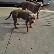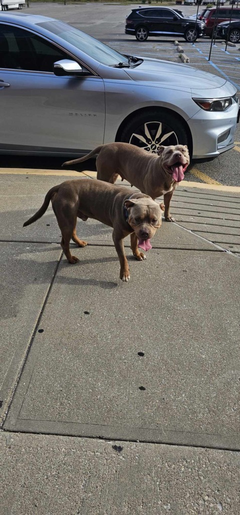 There was a male and female pitbull found outside my job at AMC theater on East Washington Street. They are both very friendly and tamed.