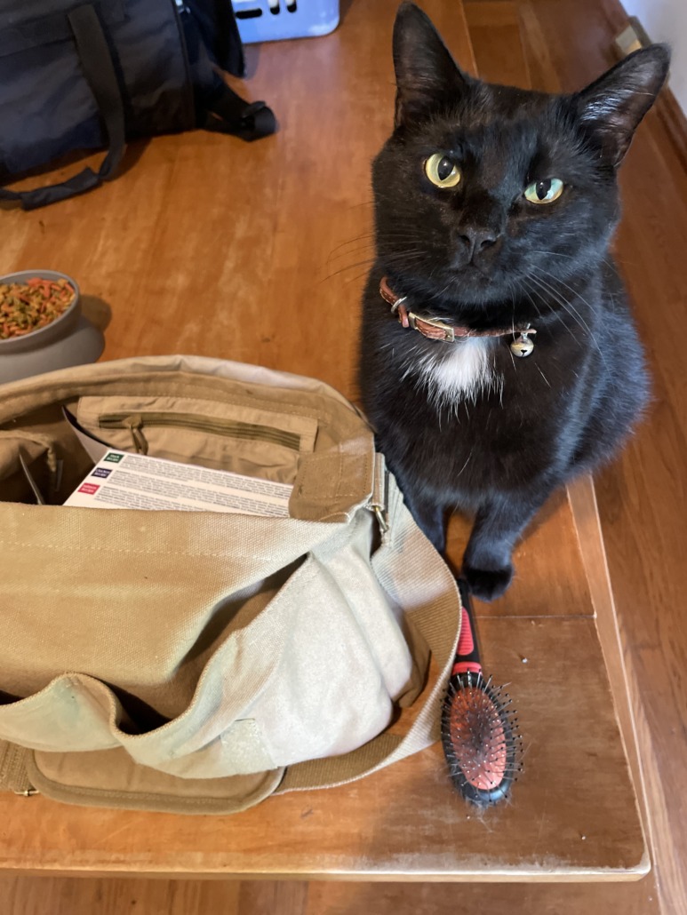 – 6 years old male, green eyes, black with few white markings (chest, stomach, back toe), no collar on when he went missing, neutered but not chipped