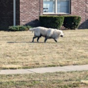 Appears to be a Great Pyrenees or a large white lab. Male. Seen in Meadow bend neighborhood at the corner of Frye Rd. and Franklin Rd.