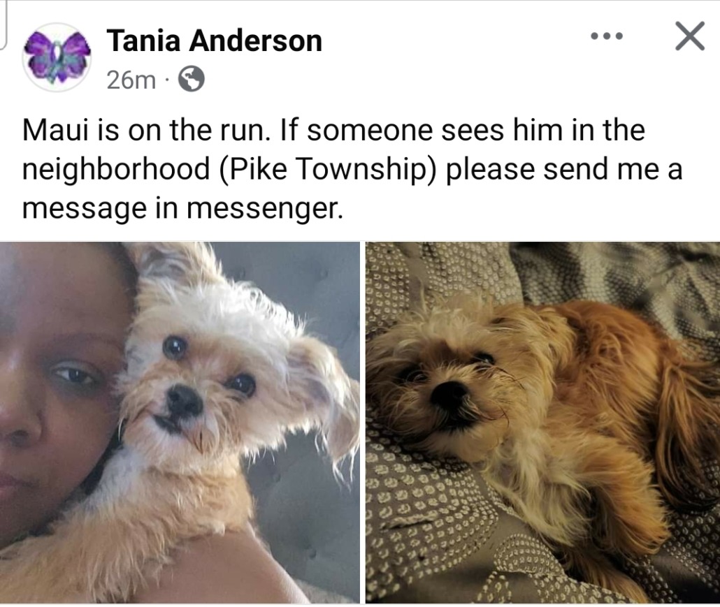 Lost Dog, Alert #77710 Maui missing near Shanghai Rd\Speights Rd, Indianapolis Pike Township46278