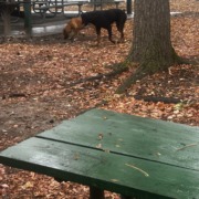2 dogs loose at krannert park one is a brown pitbull and a black brown rottwyler