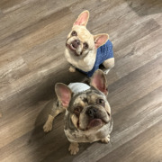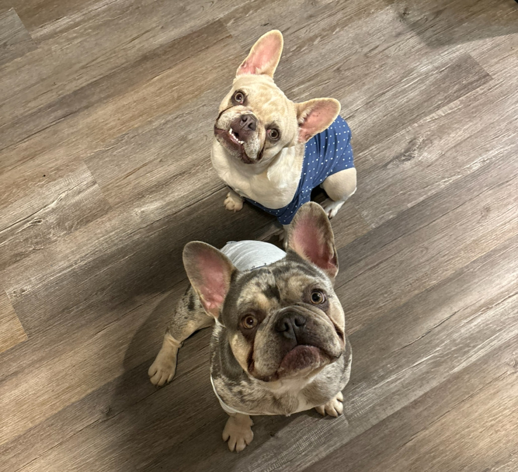 FRENCHIES – Namor (gray brindle) and Pinkle (tan brindle)
