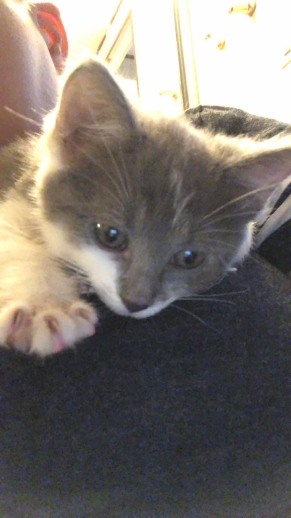 Small grey and white female kitten found at the drop off zone in the tree line of the O’Reilly parking lot on Madison Avenue near Troy Avenue. She is very friendly and not feral at all. I will personally be fostering her until her owners come forward.