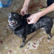 Small black dog found in the Wynbrooke neighborhood wearing a black harness with no collar. Very friendly, losing hair on his back side. He was taken to a vet and is not chipped. He is safe with a neighbor, proof of ownership will be required to return. Please reach out if you recognize this dog!