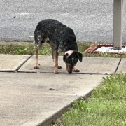Medium sized dog seen in the Fox Ridge neighborhood on the south side of Indy. Dog seems gentle and follows anyone walking. Will not get too close to anyone. Dog tried to follow myself and my dog into our house but turned and ran towards the end of the cul da sac. Not sure where it goes when it’s not in the road. Never been in this neighborhood before.