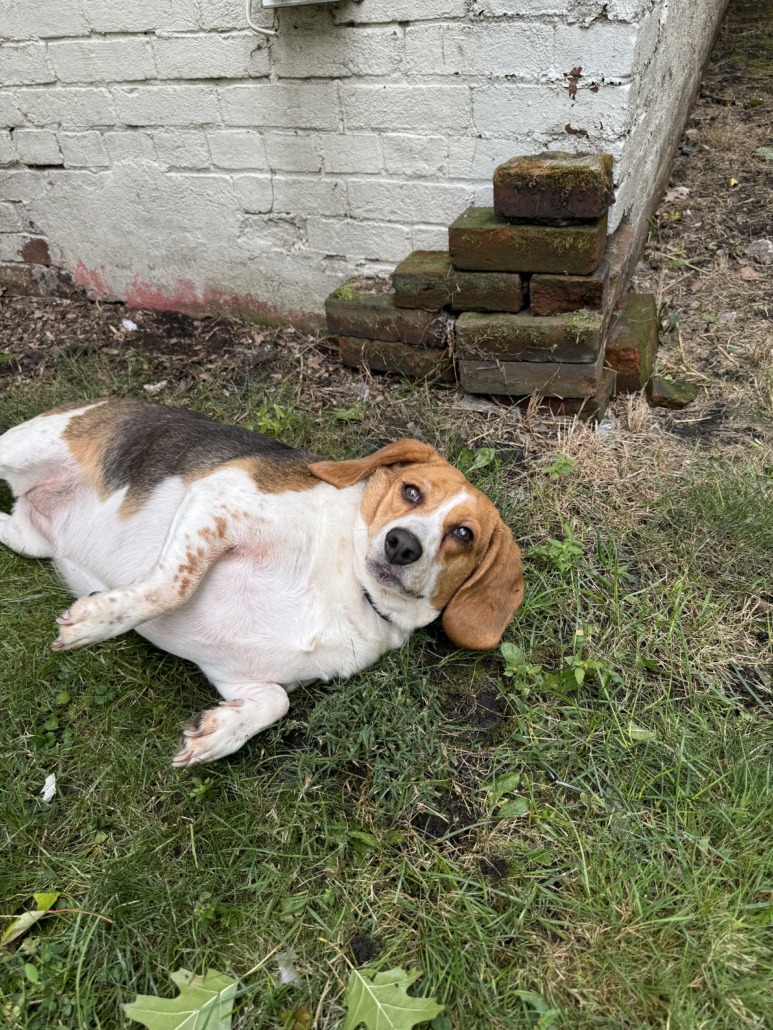 Beagle found on Woodlawn ave in fountain square. Has blue astrology collar on.