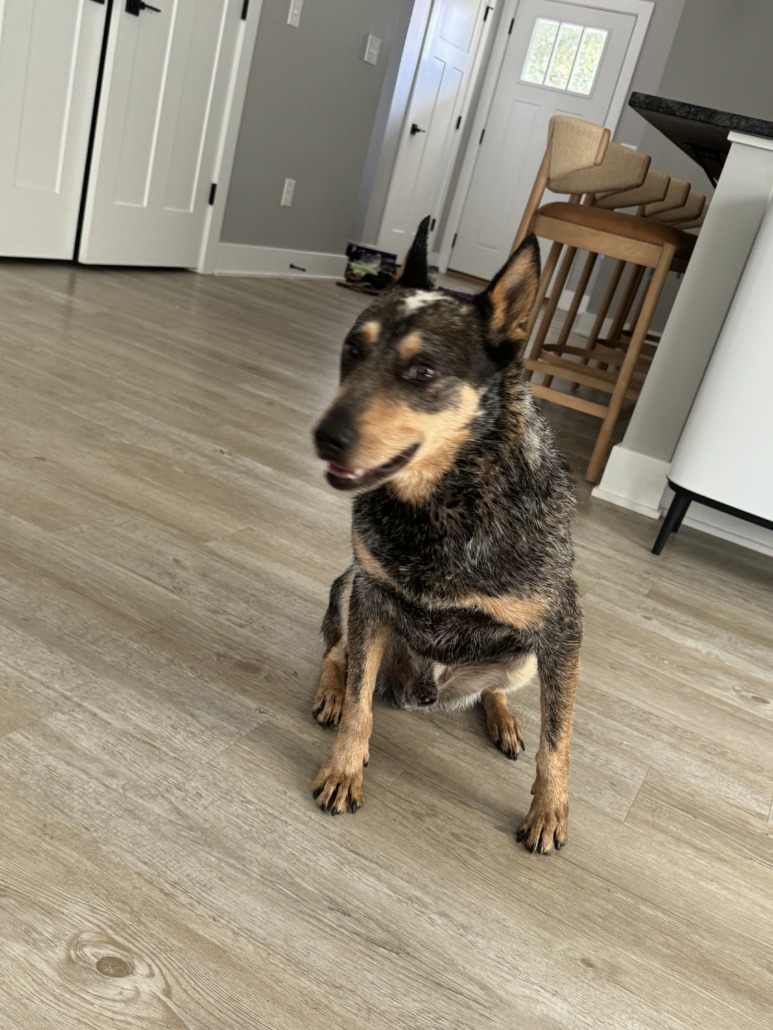 Lost cattle dog/blue heeler with white marking on his front head, lost near Indianapolis, fall creek