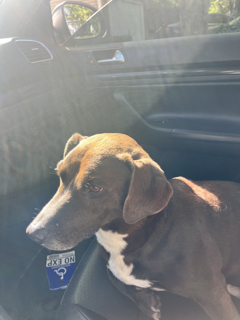 Brown lab/beagle mix. Found near the Raceway road/County Road 100 roundabout in Avon. You will have to describe the collar to claim.