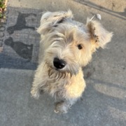 FOUND small white dog, intact male. Very dirty. Wounded. Friendly, but scared. He looks like he’s been outside for a while. We are bathing him. He does not get along with other dogs!