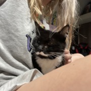 white and black. white mustache . no collar or tag. taking for a chip tmr. call or text me for more pics.