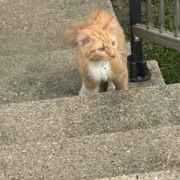 Kitten with a sparkly red collar. Super sweet and friendly. Proof of ownership required.