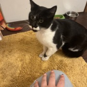 Black and white female kitty. No microchip. A little sassy. Proof of ownership required!