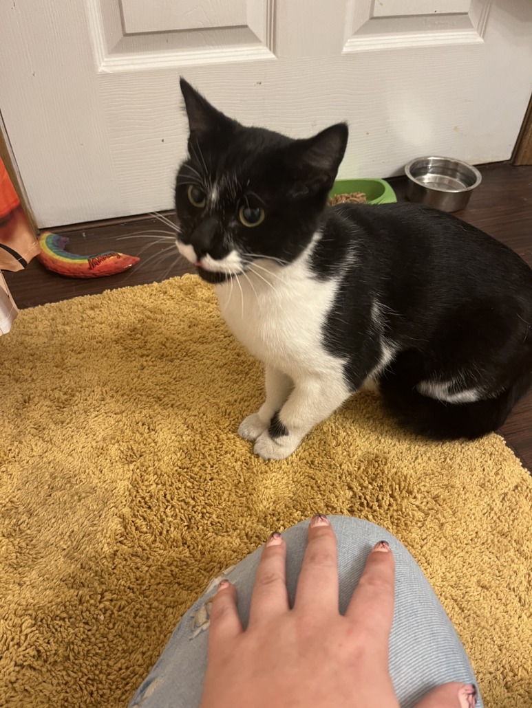 Black and white female kitty. No microchip. A little sassy. Proof of ownership required!