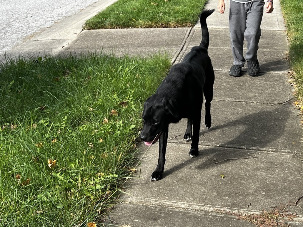 Male black lab, no neutered, no collar. He is wandering and wandered off so I don’t have him in my possesion