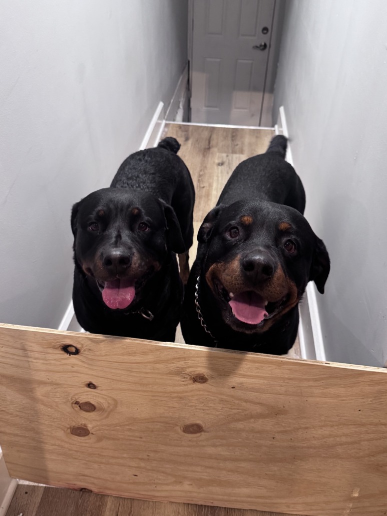 Found pair of Rottweilers. Not chipped. Not aggressive. Sweet babies. Looks to have given birth not terribly long go. MUST show proof of ownership. Have on record visit to vet and will NOT release without proof.