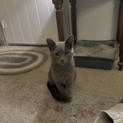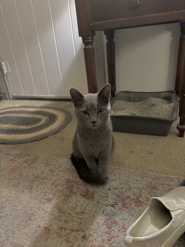 Looks like Russian Blue. Found on Audubon by Snug Irish Pub. Not neutered. Very affectionate. Proof of ownership is required.