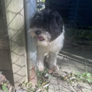 Black and white terrier or some sort. Friendly but scared. We have him in our fenced yard but have no interest in keeping. We just want to find his home and make sure he doesn’t get hit!